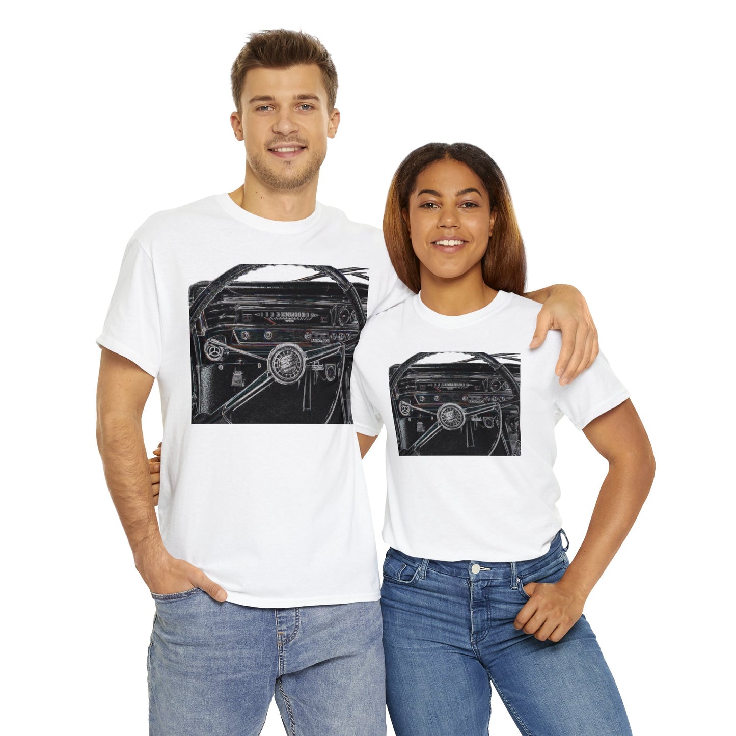 1963 Grand Prix Interior Steering Wheel, Vintage Car Interior Heavy Cotton Tee